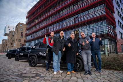 Daumen hoch für die Elektromobilität: Das Fuhrpark-Team von Coca-Cola feiert die vollständige Elektrifizierung der firmeneigenen Pkw- und Transporter-Flotte mit insgesamt 1.600 Fahrzeugen.