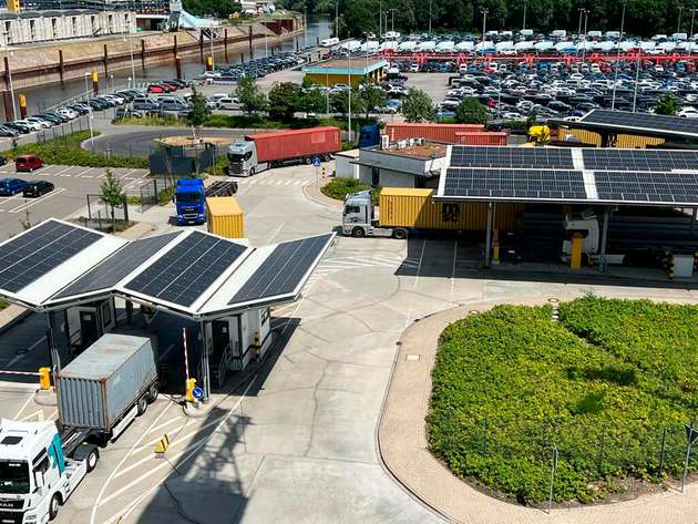So entsteht an den Terminals die Basis zur weiteren Dekarbonisierung der Transportkette. Denn die aus Rekuperation und Photovoltaik gewonnene Energie lässt sich sinnvoll zum Laden batterieelektrischer Fahrzeuge nutzen. Da besonders viele Emissionen auf der sogenannten „letzten Meile“ entstehen, die zumeist per Lkw bedient wird, kann eine konsequente Elektrifizierung der eigenen Lkw-Flotte die CO₂-Bilanz erheblich verbessern. Depot-Ladepunkte für E-Lkw direkt am Terminal bilden die Grundlage, um ein ganzheitlich emissionsfreies Terminalökosystem zu schaffen.