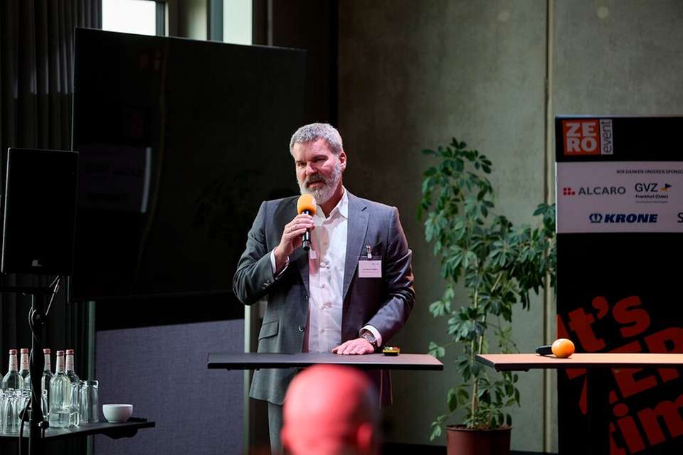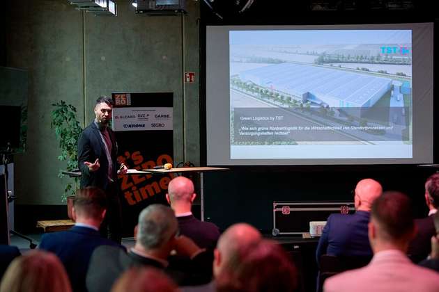 Die zweite Keynote steuerte Marcel Narejkis bei, Geschäftsführer von PamSun. Dabei handelt es sich um eine Marke der TST Gruppe, unter der der Logistikdienstleister ein bundesweites Schnell-Ladenetzwerk für Elektro-Lkw aufbaut. Narejkis betonte, dass viele Unternehmen Nachhaltigkeit zwar als Prestigeobjekt nutzen, aber oft nur wenig wirkliche Veränderung bewirken: „Vielleicht ist es auch nur Schmuck am Nachthemd. Sieht gut aus, bringt aber nichts.“