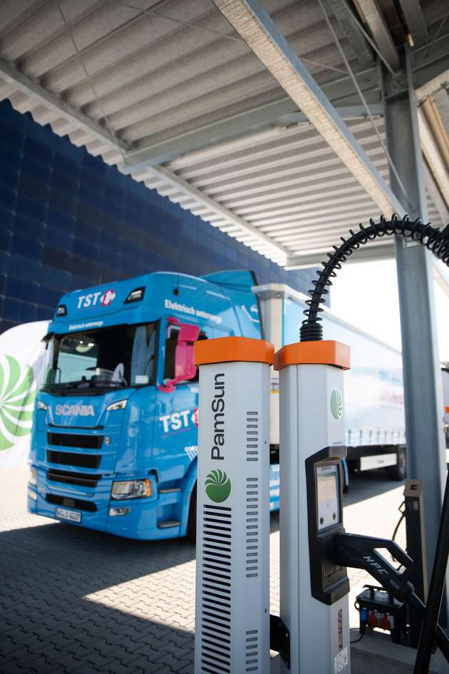 Noch wirtschaftlicher wird es, wenn die eigene Ladeinfrastruktur mit Dritten geteilt wird. Dies erhöht die Auslastung und beschleunigt die Amortisation der nicht unerheblichen Investitionen. Beispielhaft für die konsequente Umsetzung dieser Idee ist etwa die Wormser Spedition TST Logistik: Der Logistiker stattet mehr als 20 Standorte mit PV-Anlagen, Batteriespeichern und Lkw-Ladeinfrastruktur aus und gründete ein genossenschaftliches Ladenetz, dem andere Speditionen beitreten können.