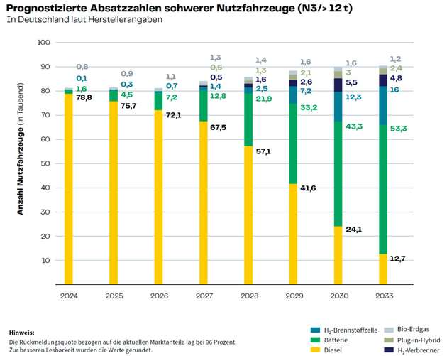 Weitere Rahmenbedingungen verstärken den Trend: Die EU CO2-Flottenzielwerte verpflichten Nutzfahrzeughersteller zur Reduzierung der CO2-Emissionen der europaweit verkauften Neufahrzeugflotte um 43 Prozent bis 2030. Für die Logistik selbst erweist sich die ESG-Regulatorik der EU-Kommission als zentraler Treiber – Nachhaltigkeit muss gegenüber Kunden, Banken und Versicherungen nachgewiesen werden. Zudem wird das europäische Emissionshandelssystems für Verkehr- und Gebäude ab Anfang 2027 den Dieselpreis perspektivisch deutlich erhöhen.