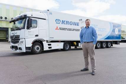 Die Waren werden während des Transports alle gekühlt. Bei der Banane sind es zum Beispiel 15 Grad, bei Pilzen und Suppengrün 6 Grad. Der Fuhrpark braucht also reichlich Kühlfahrzeuge. Darüber hinaus muss er besonders vielfältig sein: „Wir haben Transporter, Solofahrzeuge, Hängerzüge und Sattelauflieger – bei letzteren ist Krone unser Hauptlieferant“, berichtet Christian Matzel. Neben Obst und Gemüse liefert das Unternehmen auch Pflanzen aus, und die werden auf Blumencontainer gepackt: „Wir können sie sehr gut in die Fahrzeuge von Krone laden. Die entscheidenden Zentimeter mehr ermöglichen es, fünf statt vier Trolleys zu verladen.“ Bei Havelexpress sind 88 Kraftfahrer fest angestellt. Gemeinsam mit dem 13-köpfigen Büroteam sowie zwei Mitarbeitern in der Werkstatt sorgen sie für den Rund-um-die-Uhr-Service des Unternehmens. „Unsere Kunden haben sehr unterschiedliche Zeitschienen“, sagt Matzel, „die einen brauchen die Ware um 6 Uhr morgens, die anderen um 20 Uhr abends.“ Der Fuhrpark umfasst unter anderem 24 Sattelzugmaschinen und 26 Auflieger. Ein Krone Cool Liner ist derzeit mit einer innovativen Kühlmaschine der Mitsubishi Heavy Industries Thermal Transport Europe (MTTE) GmbH unterwegs. Der japanische Hersteller gilt als technologischer Vorreiter. Krone und MTTE kooperieren mit Havelexpress für einen Langzeittest. „Der im Testeinsatz laufende Krone Cool Liner ist mit einer konventionellen Mitsubishi-TFV-150-Kühlmaschine ausgestattet, die mit Laufruhe und geringem Dieselverbrauch punktet. Gleichzeitig gewährleistet die Wärmepumpentechnik sowohl kurze Abtauzeiten als auch schnelle und effektive Heizleistungen“, erklärt Peter Köthe, Regionalvertriebsleiter der Krone Nutzfahrzeug Gruppe. In weiteren Tests sollen auch die vollelektrischen Kühlmaschinen von Mitsubishi im täglichen Betrieb getestet werden. „Diese Lösung arbeitet ohne Generatorachse – die Kühlmaschine wird ausschließlich von einem extrem leistungsfähigen Akku versorgt“, so Christian Goetsch, Key Account Manager International bei MTTE.