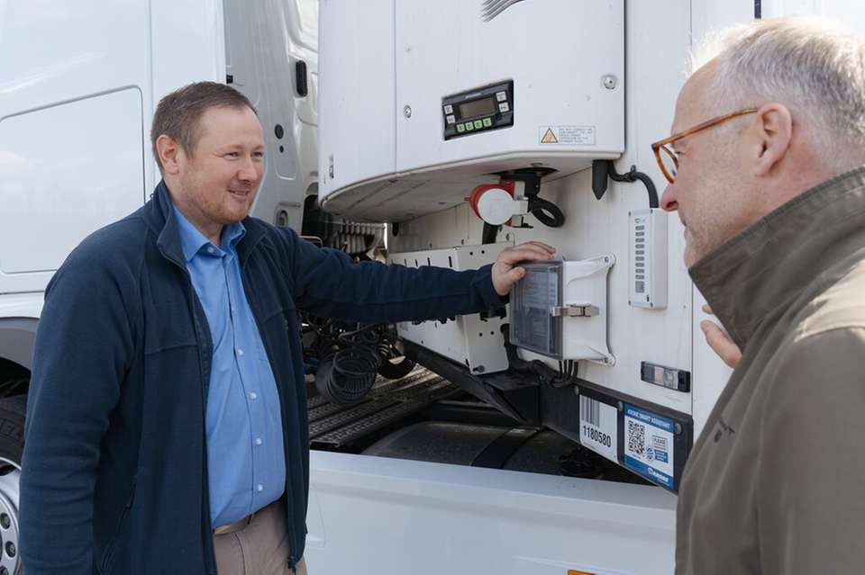 Die Waren werden während des Transports alle gekühlt. Bei der Banane sind es zum Beispiel 15 Grad, bei Pilzen und Suppengrün 6 Grad. Der Fuhrpark braucht also reichlich Kühlfahrzeuge. Darüber hinaus muss er besonders vielfältig sein: „Wir haben Transporter, Solofahrzeuge, Hängerzüge und Sattelauflieger – bei letzteren ist Krone unser Hauptlieferant“, berichtet Christian Matzel. Neben Obst und Gemüse liefert das Unternehmen auch Pflanzen aus, und die werden auf Blumencontainer gepackt: „Wir können sie sehr gut in die Fahrzeuge von Krone laden. Die entscheidenden Zentimeter mehr ermöglichen es, fünf statt vier Trolleys zu verladen.“ Bei Havelexpress sind 88 Kraftfahrer fest angestellt. Gemeinsam mit dem 13-köpfigen Büroteam sowie zwei Mitarbeitern in der Werkstatt sorgen sie für den Rund-um-die-Uhr-Service des Unternehmens. „Unsere Kunden haben sehr unterschiedliche Zeitschienen“, sagt Matzel, „die einen brauchen die Ware um 6 Uhr morgens, die anderen um 20 Uhr abends.“ Der Fuhrpark umfasst unter anderem 24 Sattelzugmaschinen und 26 Auflieger. Ein Krone Cool Liner ist derzeit mit einer innovativen Kühlmaschine der Mitsubishi Heavy Industries Thermal Transport Europe (MTTE) GmbH unterwegs. Der japanische Hersteller gilt als technologischer Vorreiter. Krone und MTTE kooperieren mit Havelexpress für einen Langzeittest. „Der im Testeinsatz laufende Krone Cool Liner ist mit einer konventionellen Mitsubishi-TFV-150-Kühlmaschine ausgestattet, die mit Laufruhe und geringem Dieselverbrauch punktet. Gleichzeitig gewährleistet die Wärmepumpentechnik sowohl kurze Abtauzeiten als auch schnelle und effektive Heizleistungen“, erklärt Peter Köthe, Regionalvertriebsleiter der Krone Nutzfahrzeug Gruppe. In weiteren Tests sollen auch die vollelektrischen Kühlmaschinen von Mitsubishi im täglichen Betrieb getestet werden. „Diese Lösung arbeitet ohne Generatorachse – die Kühlmaschine wird ausschließlich von einem extrem leistungsfähigen Akku versorgt“, so Christian Goetsch, Key Account Manager International bei MTTE.